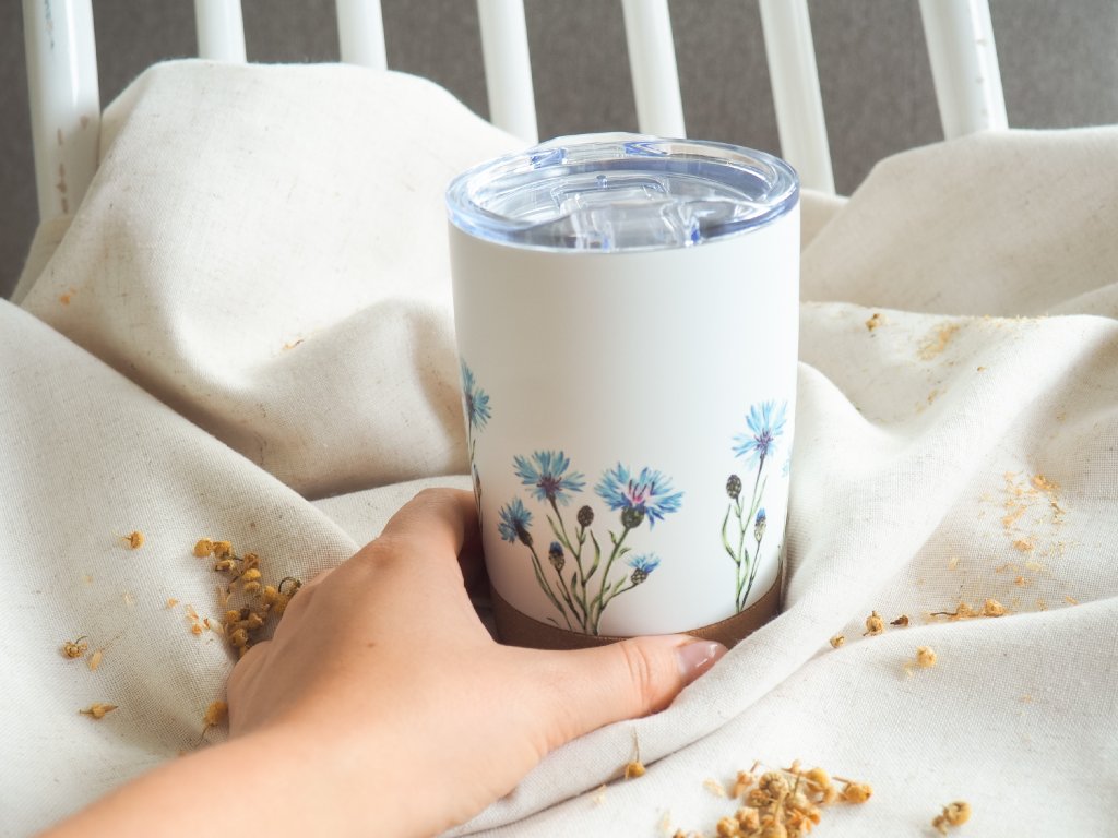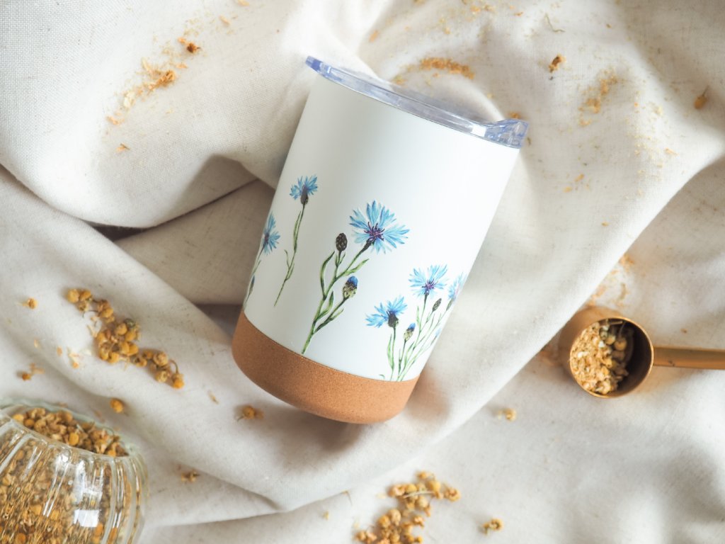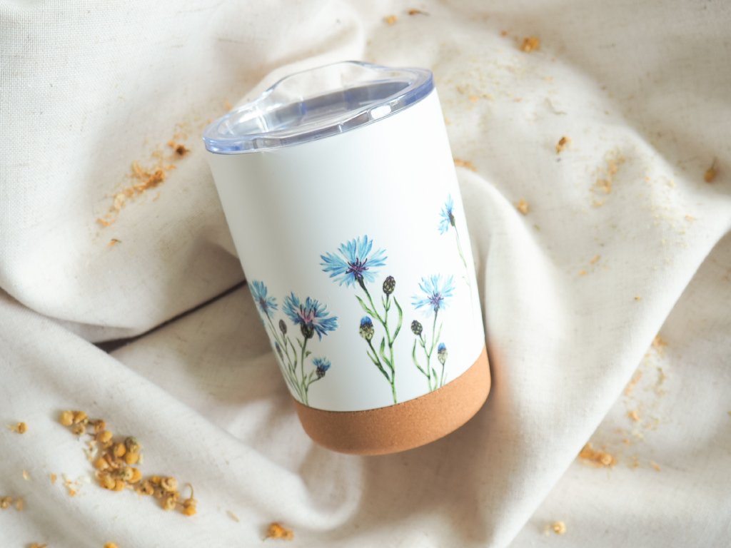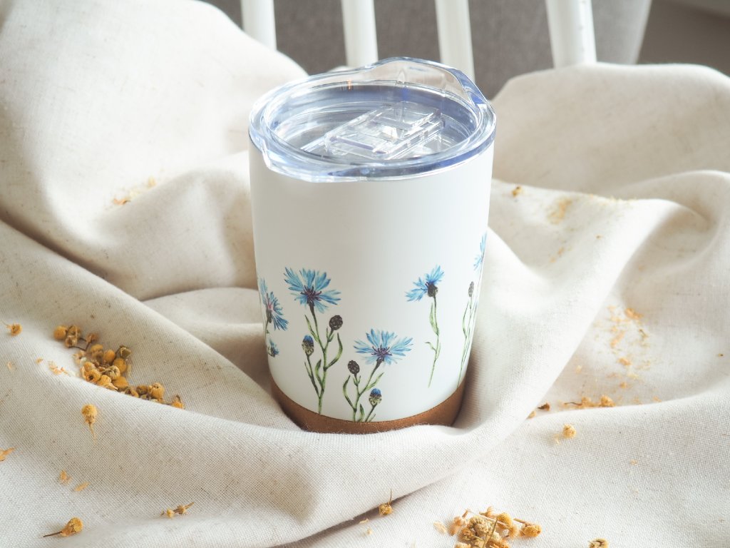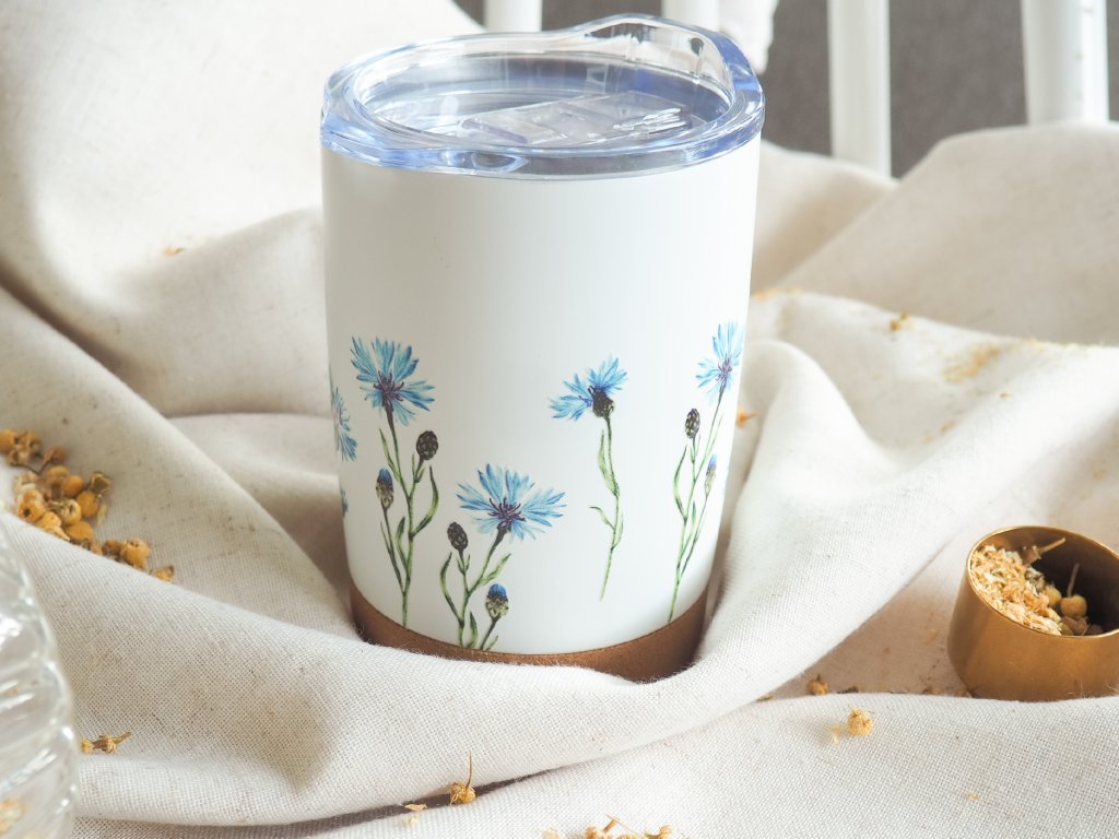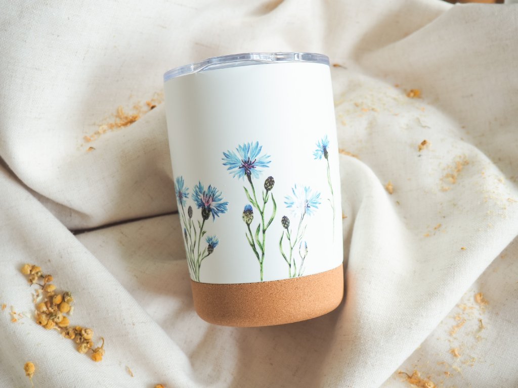 Nerezový hrnek na cesty, do práce nebo do školy? Termohrnek s jemnými autorskými ilustracemi chrp je ideální volbou pro všechny milovníky přírody a originálního designu.