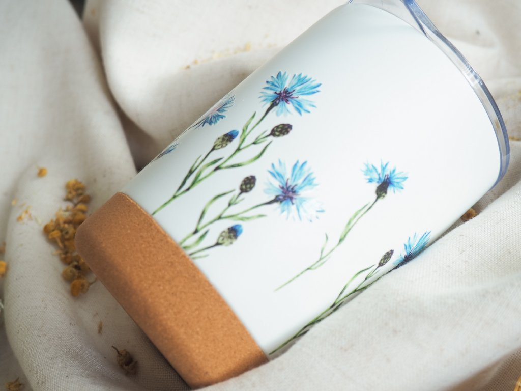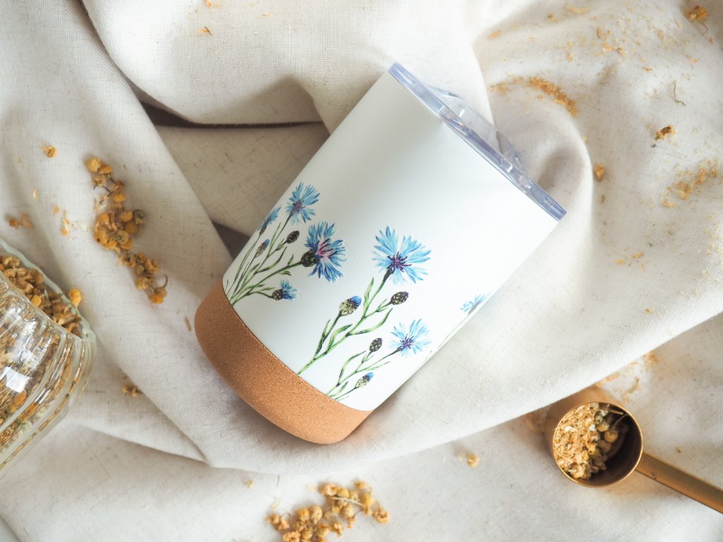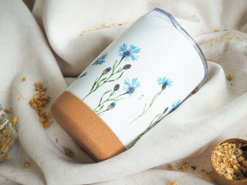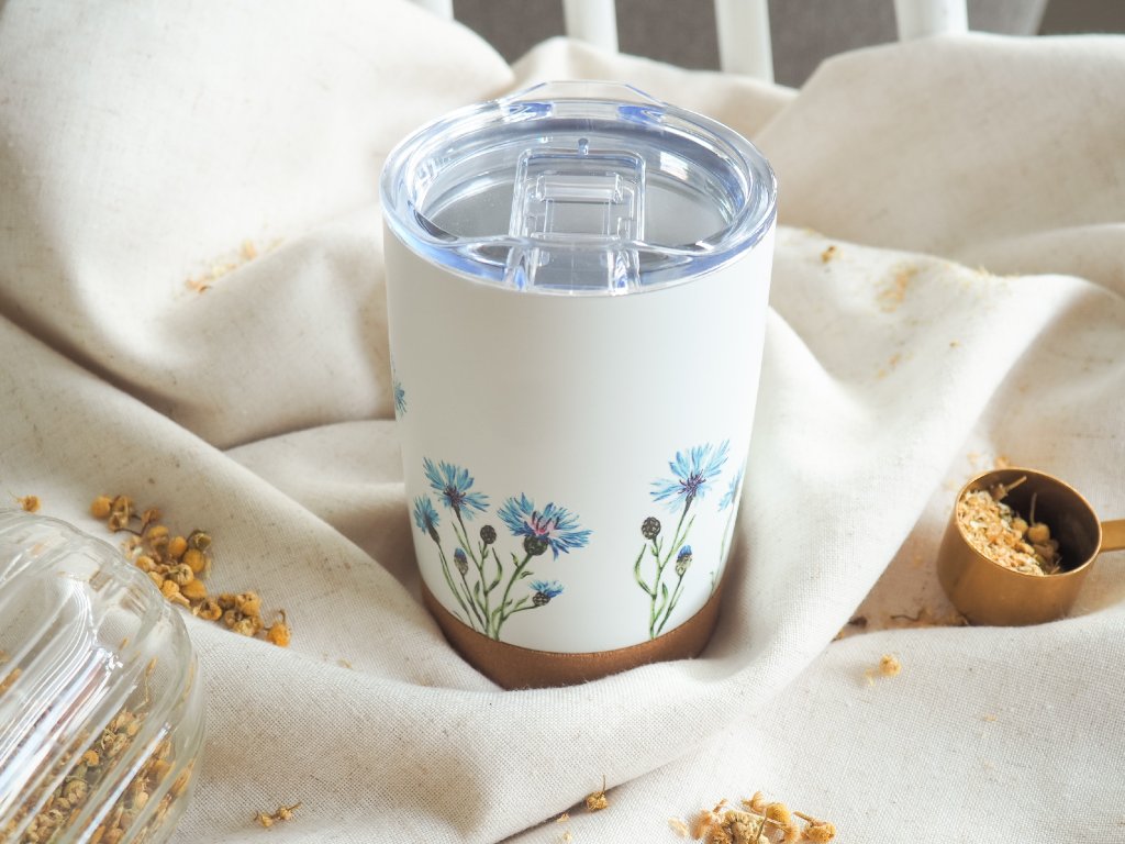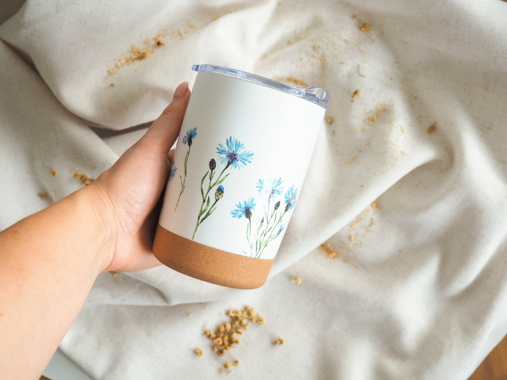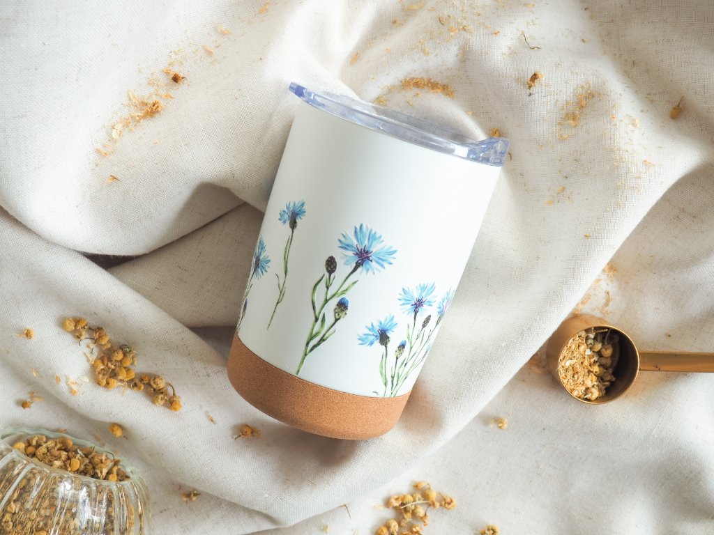 Nerezový hrnek na cesty, do práce nebo do školy? Termohrnek s jemnými autorskými ilustracemi chrp je ideální volbou pro všechny milovníky přírody a originálního designu.