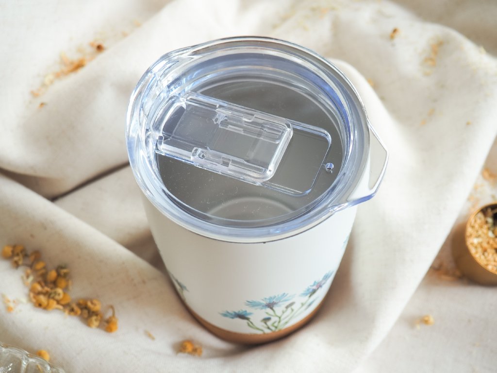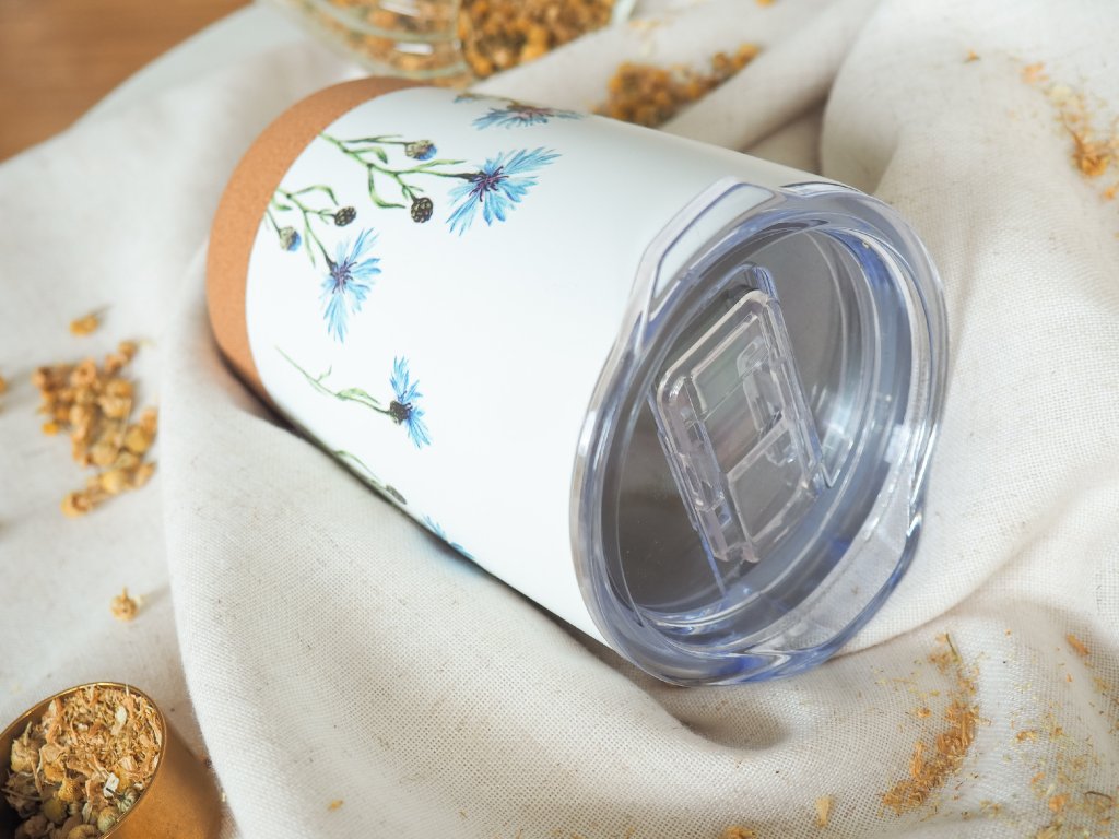 Díky dvoustěnné nerezové izolaci udrží nápoj horký nebo studený po delší dobu. Bílý matný povrch je doplněný o květinové ilustrace, které jsou lesklé, lehce vystouplé a odolné proti poškrábání díky UV laku – ideální na každodenní používání.