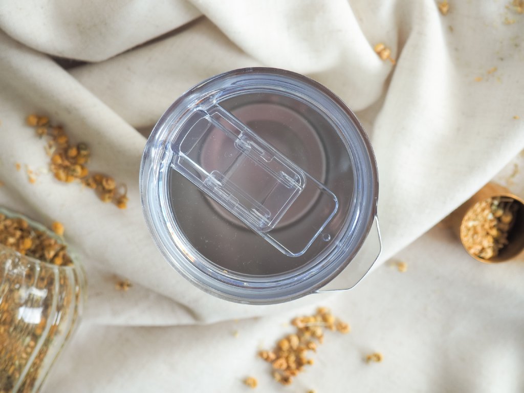 • Víčko je plastové, průhledné. Není neprotékající tak, že hrnek můžete položit do kabelky, pozor.