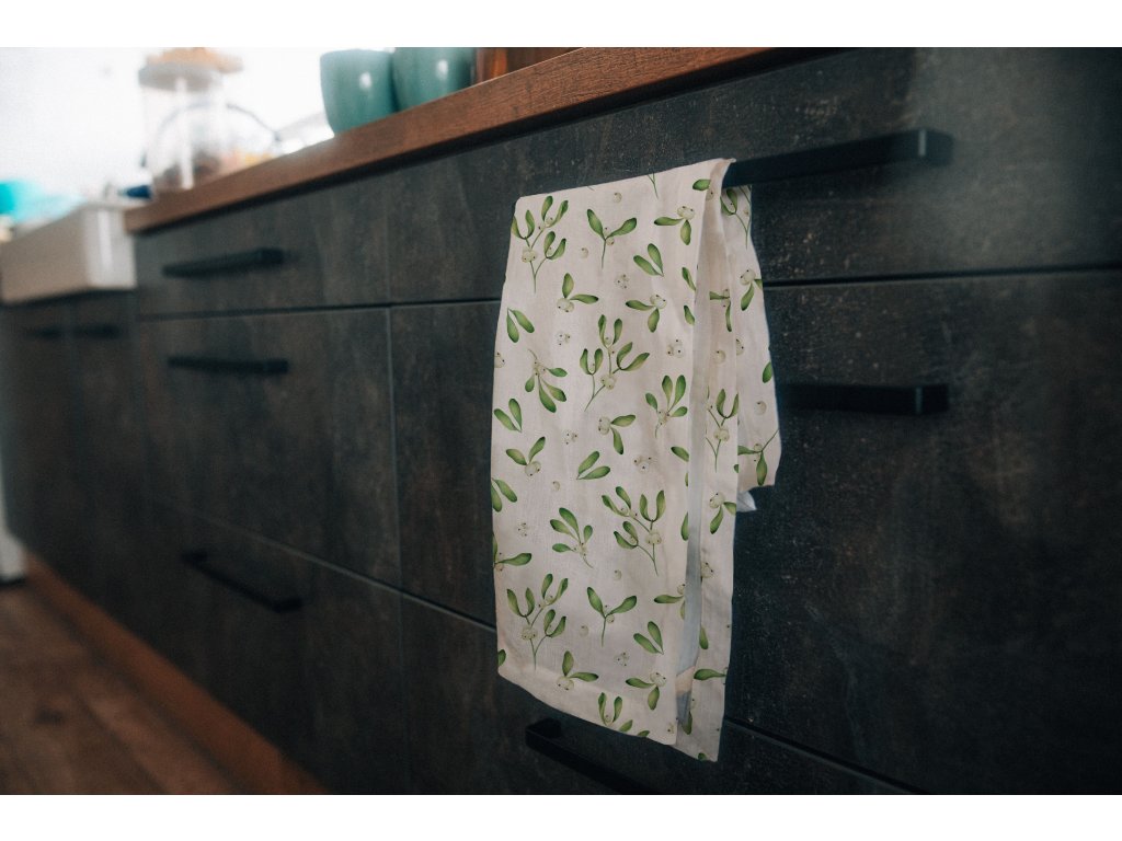 Vánoční sada 3 utěrek (jmelí, cesmína a cukroví) v dárkové krabičce.