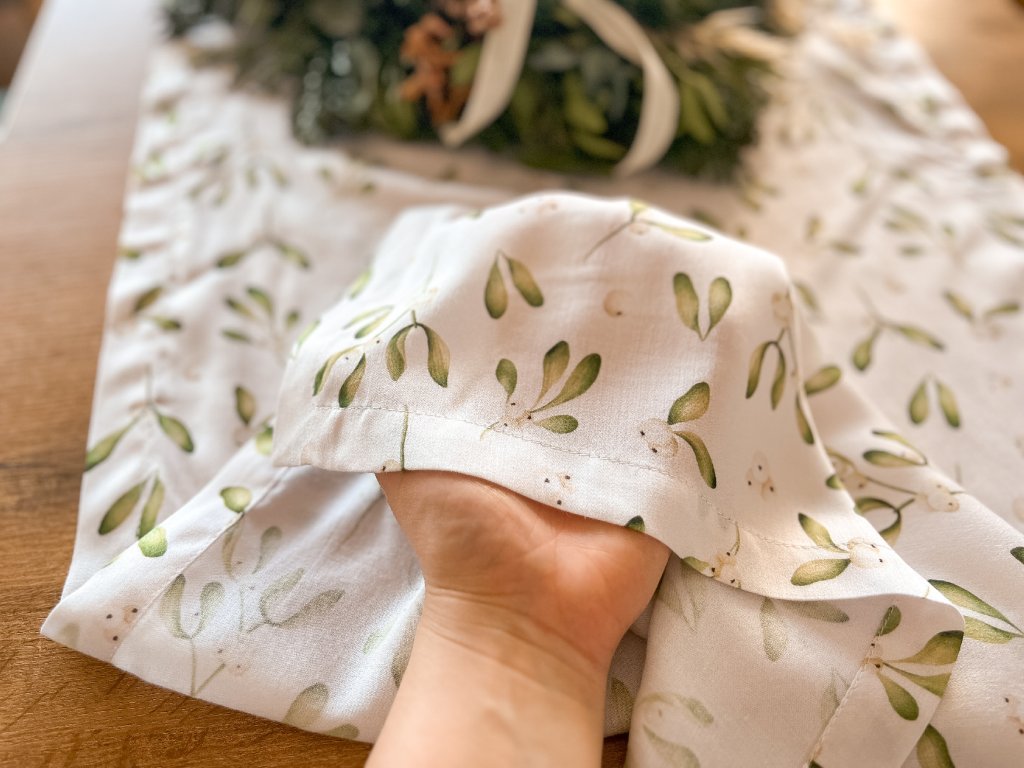 - Ušito z jemňoučké viskózy. Běhoun je jemný, příjemný na dotek a lehce lesklý. Ještě jemnější než bavlněný satén a krásně splývá.