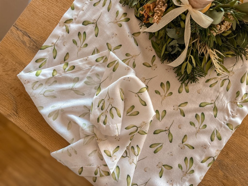 - Tato velikost byla navržena pro klasické rozměry stolů (např. 120 cm na délku) tak, aby běhoun na okrajích přepadával.