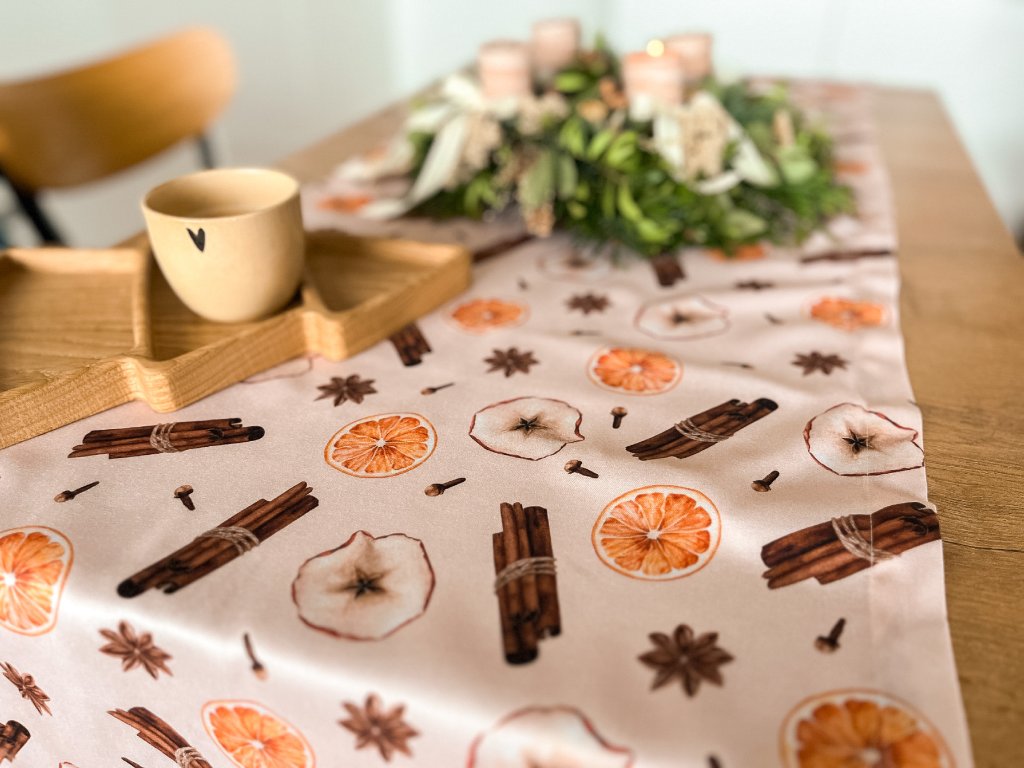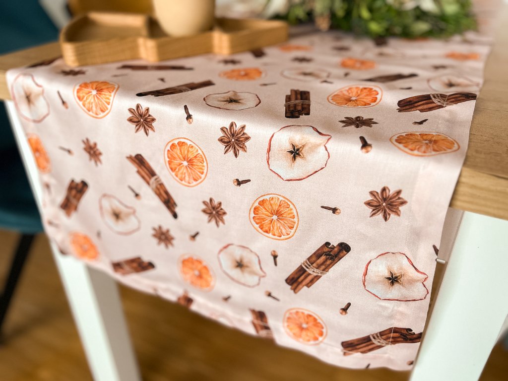 • Běhoun se hodí po délce doprostřed velikého stolu. Na okrajích nepřepadává a je hezkou ozdobou prostředku stolu.