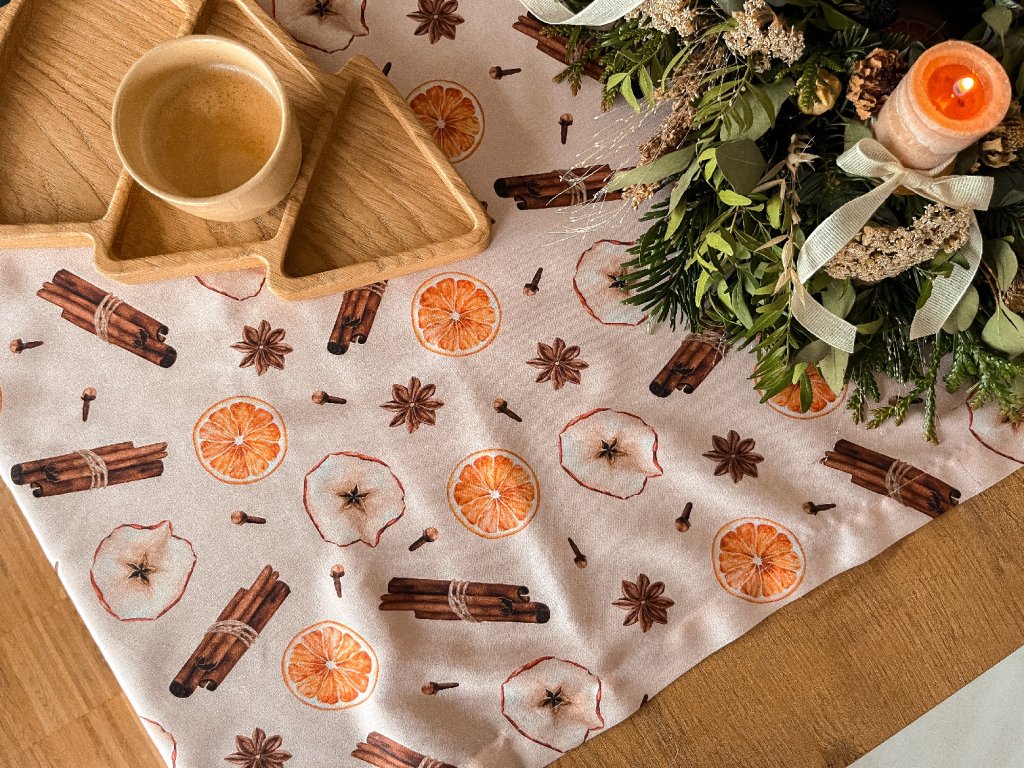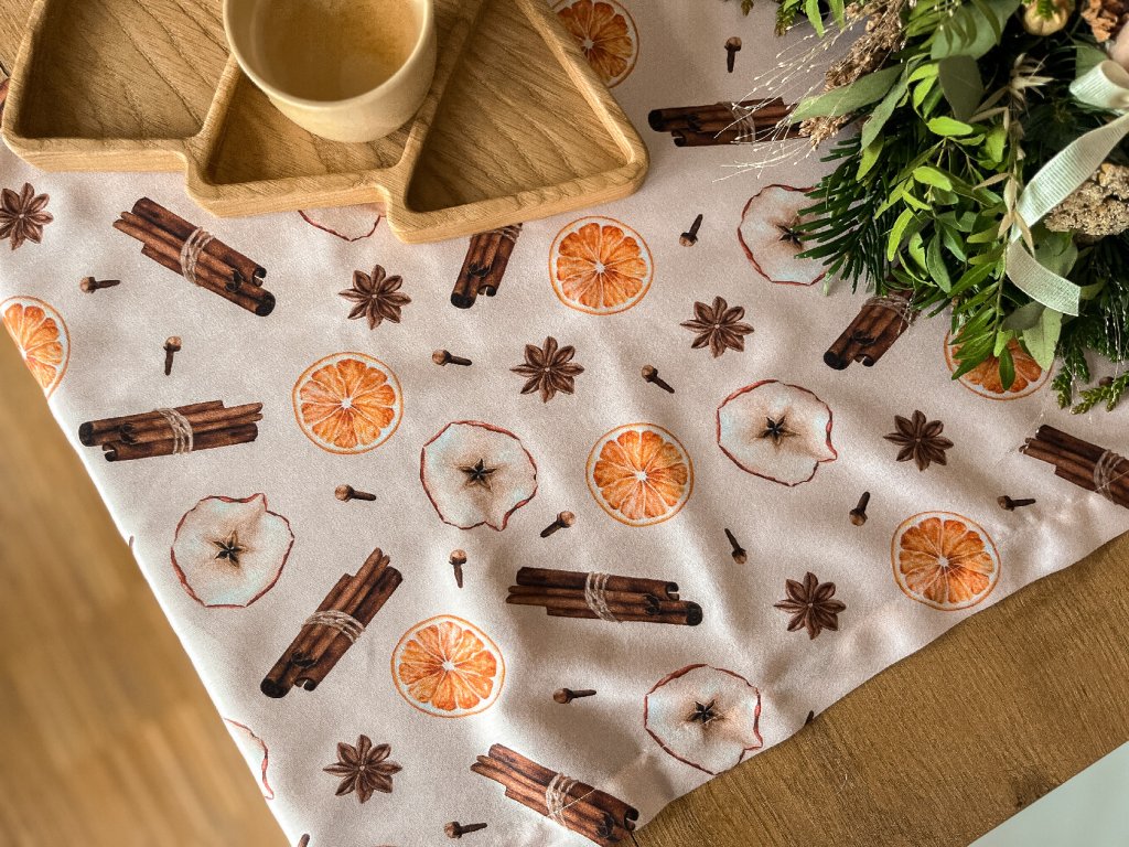 • Tato velikost byla navržena pro klasické rozměry stolů (např. 120 cm na délku) tak, aby běhoun na okrajích přepadával.